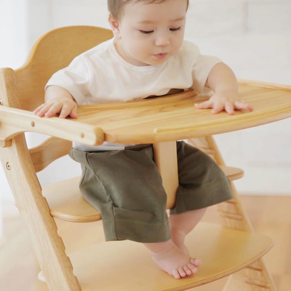 子どもがお座りできるようになると、子どもの居場所のひとつとしてベビーチェアを取り入れる家庭も多いと思います。毎日座って、食べて、ときにはトントンとテーブルをたたいてみたり。実はその何気ない毎日の積み重ねこそが、私たちyamatoyaが大切にしたいと考えている、「木育」につながっていると思っています。