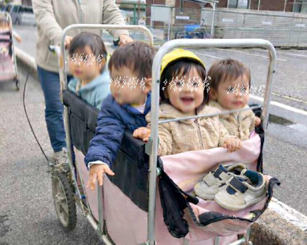 そんなことを考えている横で、双子はおさんぽ用カートの中で保育士さんに見守られながら、たまに手拍子をしています。