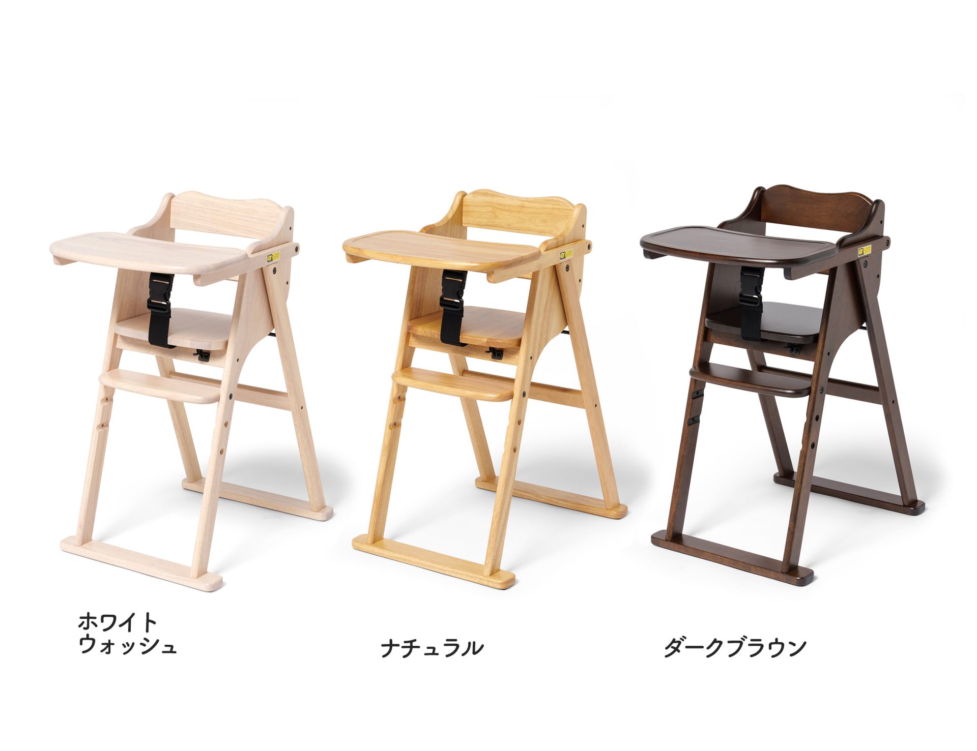 「たたも折りたたみベビーハイチェア」のモニターを、ホワイトウォッシュ、ナチュラル、ダークブラウンの中から計10名様募集いたします。